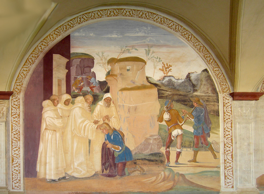 Fresken gemalt um 1500 von Luca Signorelli und Giovanni Antonio Bazzi, genannt Sodoma, Kreuzgang des Klosters Monte Oliveto Maggiore