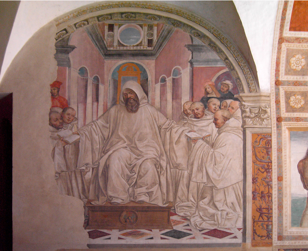 Fresken gemalt um 1500 von Luca Signorelli und Giovanni Antonio Bazzi, genannt Sodoma, Kreuzgang des Klosters Monte Oliveto Maggiore
