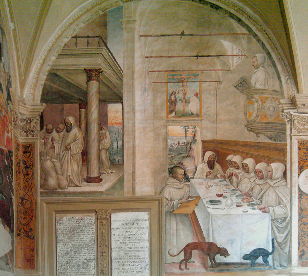 Fresken gemalt um 1500 von Luca Signorelli und Giovanni Antonio Bazzi, genannt Sodoma, Kreuzgang des Klosters Monte Oliveto Maggiore