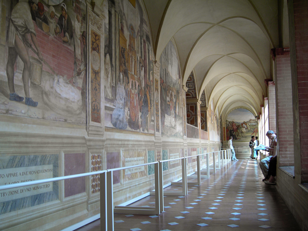 Fresken gemalt um 1500 von Luca Signorelli und Giovanni Antonio Bazzi, genannt Sodoma, Kreuzgang des Klosters Monte Oliveto Maggiore