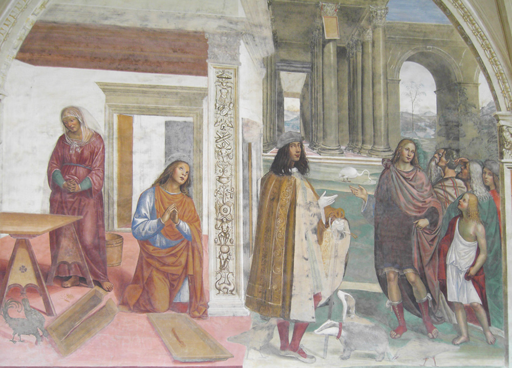 Fresken gemalt um 1500 von Luca Signorelli und Giovanni Antonio Bazzi, genannt Sodoma, Kreuzgang des Klosters Monte Oliveto Maggiore