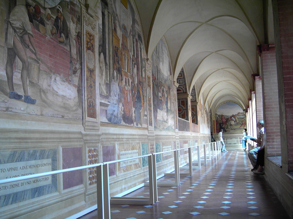 Fresken gemalt um 1500 von Luca Signorelli und Giovanni Antonio Bazzi, genannt Sodoma, Kreuzgang des Klosters Monte Oliveto Maggiore